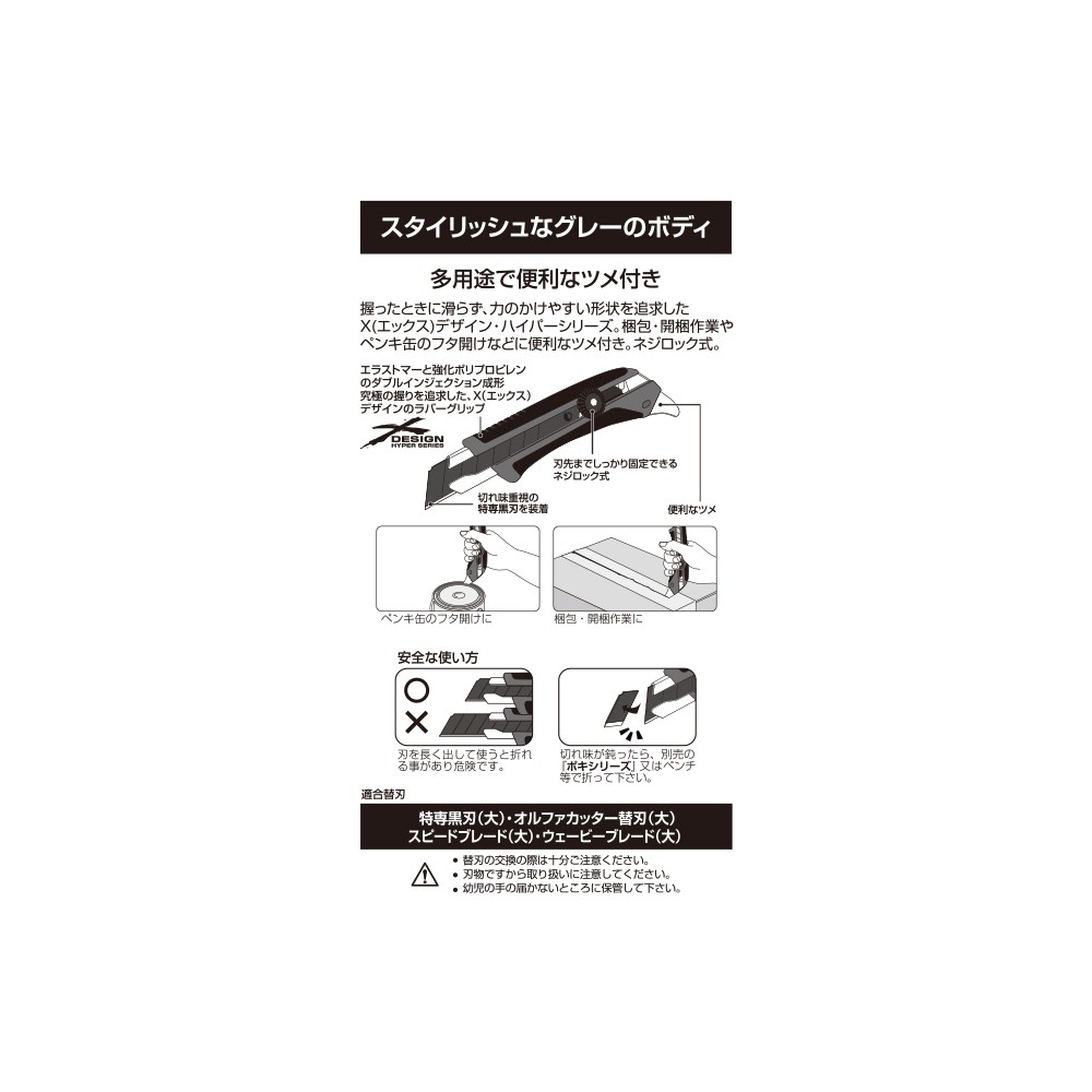 Řezač s rukojetí z protiskluzového materiálu odolného proti acetonu a kyselině, plochá pojistka k posunu čepele, automaticky blokovaná... Řezač s rukojetí z protiskluzového...